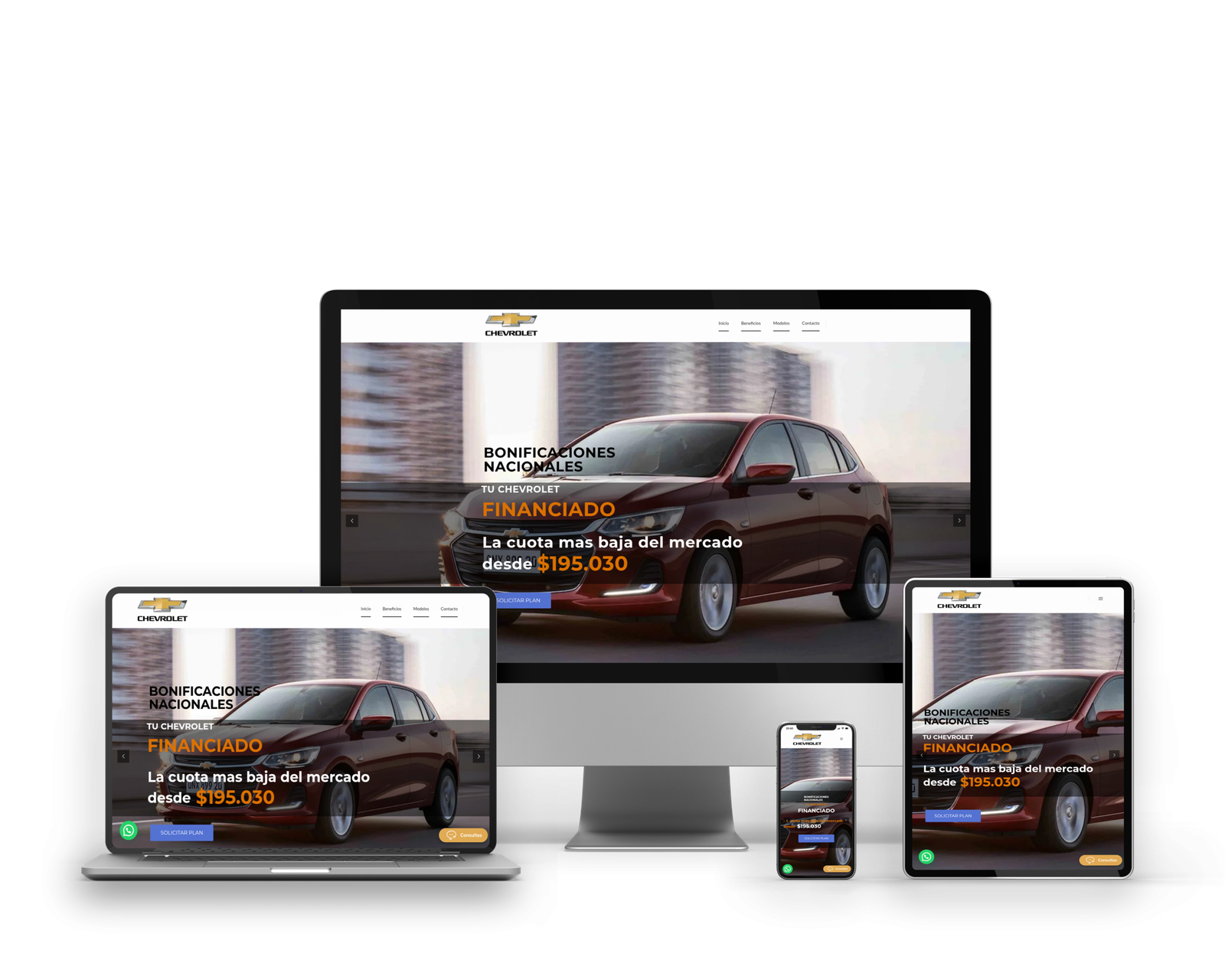 Desarrollamos un sitio Institucional comercial para Plan Nacional Chevrolet, donde se destacan planes de financiación, bonificaciones y modelos disponibles. Su estructura busca guiar al visitante hacia generar consultas — y actualmente cuenta con campaña activa en Google Ads, con excelentes resultados en visibilidad y conversiones. El sitio es responsive y pensado para funcionar sin fricciones en cualquier dispositivo.